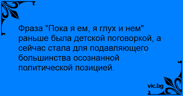Фраза "Пока я ем, я глух и нем" раньше была детской поговоркой, а сейчас стала для подавляющего большинства осознанной политической позицией.