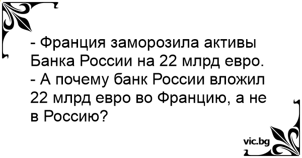 - А почему банк России вложил 22 млрд евро во Францию, а не в Россию?
