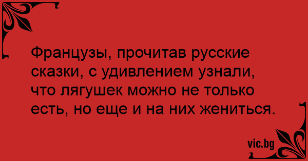 Французы, прочитав русские сказки, с удивлением узнали, что лягушек можно не только есть, но еще и на них жениться.