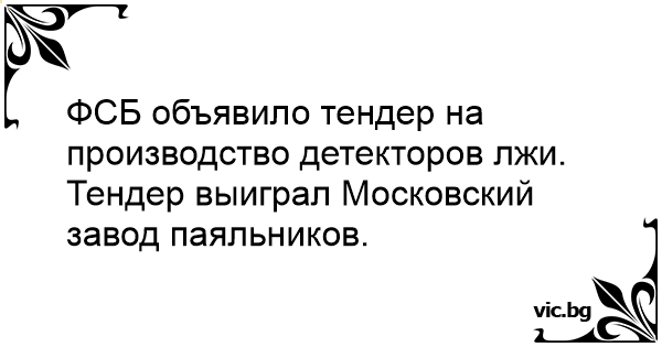 ФСБ объявило тендер на производство детекторов лжи. Тендер выиграл Московский завод паяльников.
