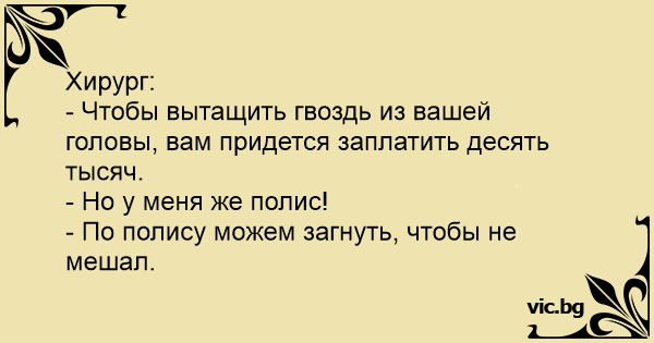 - Чтобы вытащить гвоздь из вашей головы, вам придется заплатить десять тысяч.