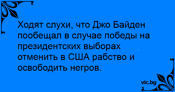 Ходят слухи, что Джо Байден пообещал в случае победы на президентских выборах отменить в США рабство и освободить негров.