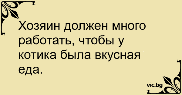 Хозяин должен много работать, чтобы у котика была вкусная еда.