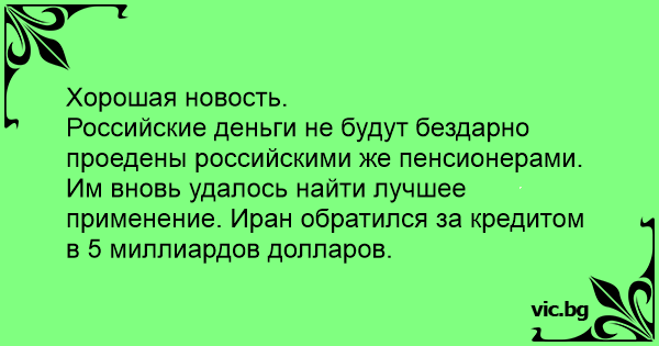 Российские деньги не будут бездарно проедены российскими же пенсионерами. Им вновь удалось найти лучшее применение. Иран обратился за кредитом в 5 миллиардов долларов.