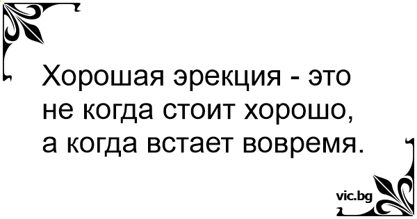 Хорошая эрекция - это не когда стоит хорошо, а когда встает вовремя.