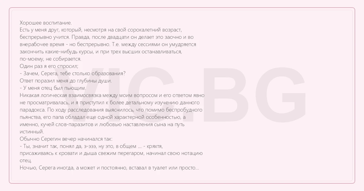 присаживаясь к кровати и дыша свежим перегаром, начинал свою нотацию