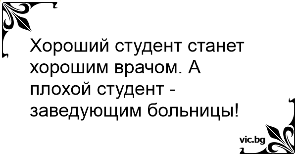 Хороший студент станет хорошим врачом. А плохой студент - заведующим больницы!