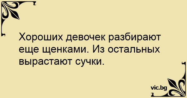 Хороших девочек разбирают еще щенками. Из остальных вырастают сучки.