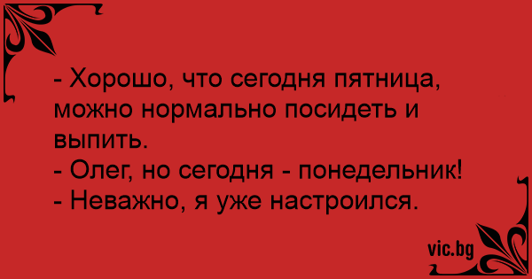 - Хорошо, что сегодня пятница, можно нормально посидеть и выпить.