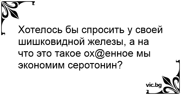 Хотелось бы спросить у своей шишковидной железы, а на что это такое ох@енное мы экономим серотонин?