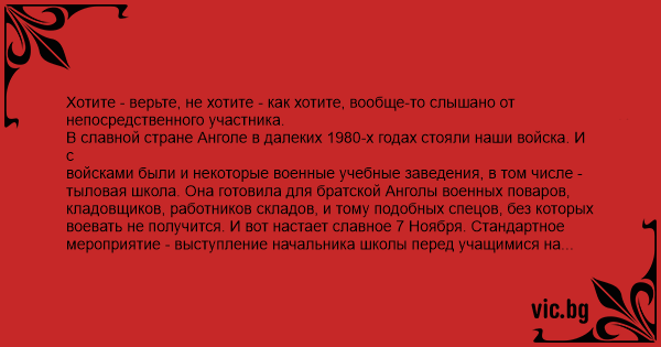 В славной стране Анголе в далеких 1980-х годах стояли наши войска. И с