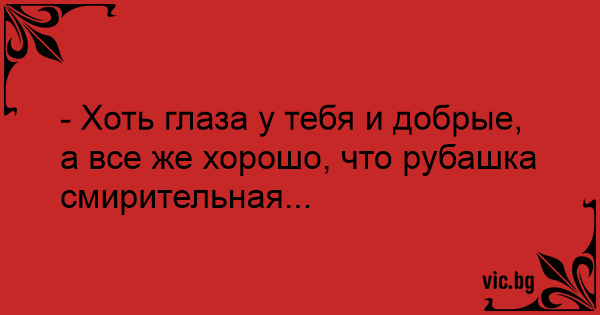 - Хоть глаза у тебя и добрые, а все же хорошо, что рубашка смирительная...