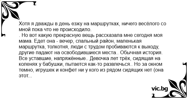 Хотя я дважды в день езжу на маршрутках, ничего весёлого со мной пока что не происходило.