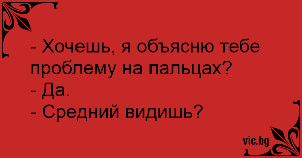 - Да ти обясня ли проблема с пръсти? - Да - Средния виждаш ли го?