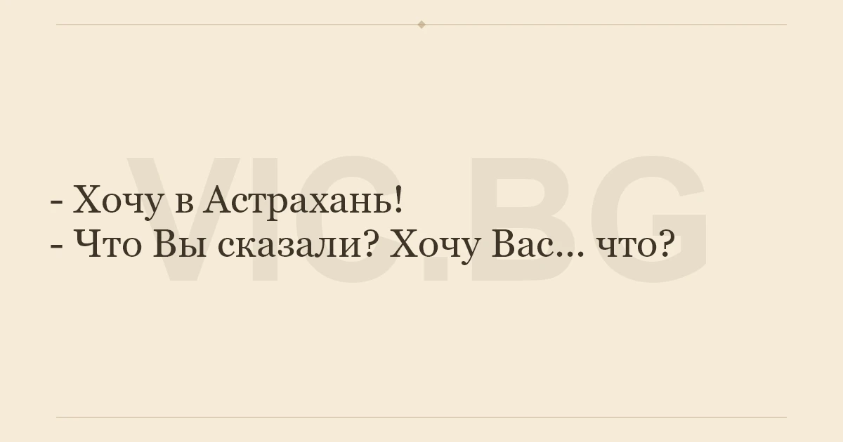 - Хочу в Астрахань! - Что Вы сказали? Хочу Вас... что?