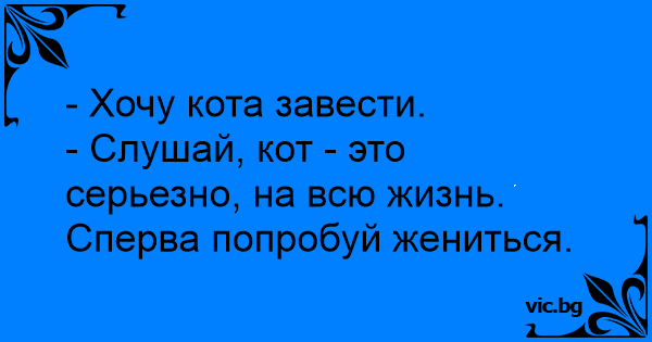 - Слушай, кот - это серьезно, на всю жизнь. Сперва попробуй жениться.