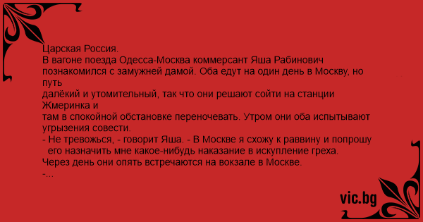 - Не тревожься, - говорит Яша. - В Москве я схожу к раввину и попрошу