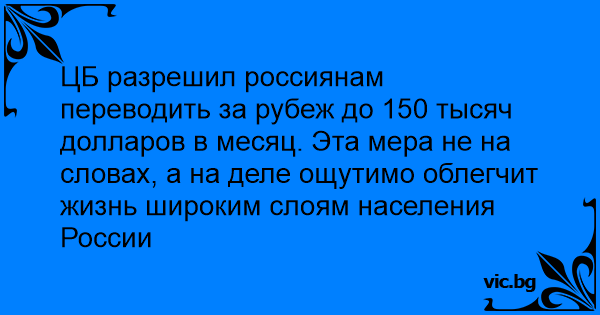 ЦБ разрешил россиянам переводить за рубеж до 150 тысяч долларов в месяц. Эта мера не на словах, а на деле ощутимо облегчит жизнь широким слоям населения России