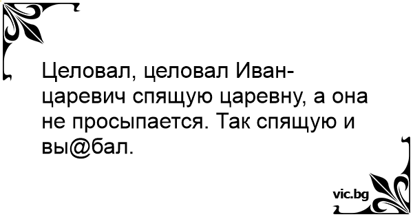 Целовал, целовал Иван-царевич спящую царевну, а она не просыпается. Так спящую и вы@бал.