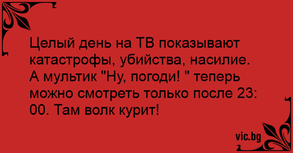 А мультик "Ну, погоди! " теперь можно смотреть только после 23: 00. Там волк курит!