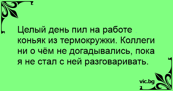 Целый день пил на работе коньяк из термокружки. Коллеги ни о чём не догадывались, пока я не стал с ней разговаривать.