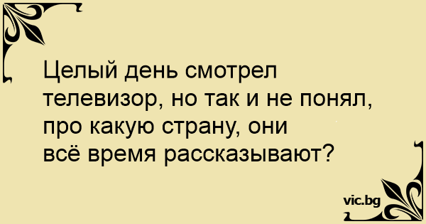 Целый день смотрел телевизор, но так и не понял, про какую страну, они