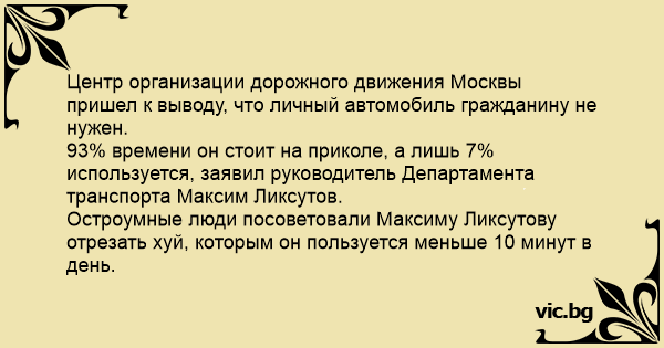 Центр организации дорожного движения Москвы пришел к выводу, что личный автомобиль гражданину не нужен.
