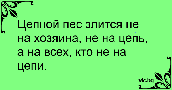 Цепной пес злится не на хозяина, не на цепь, а на всех, кто не на цепи.