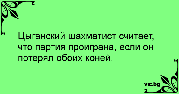Цыганский шахматист считает, что партия проиграна, если он потерял обоих коней.