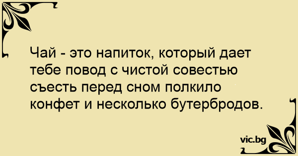 Чай - это напиток, который дает тебе повод с чистой совестью съесть перед сном полкило конфет и несколько бутербродов.