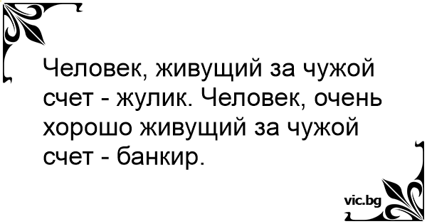 Человек, живущий за чужой счет - жулик. Человек, очень хорошо живущий за чужой счет - банкир.
