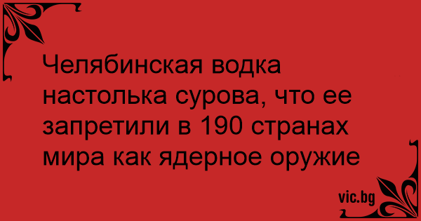 Челябинская водка настолька сурова, что ее запретили в 190 странах мира как ядерное оружие