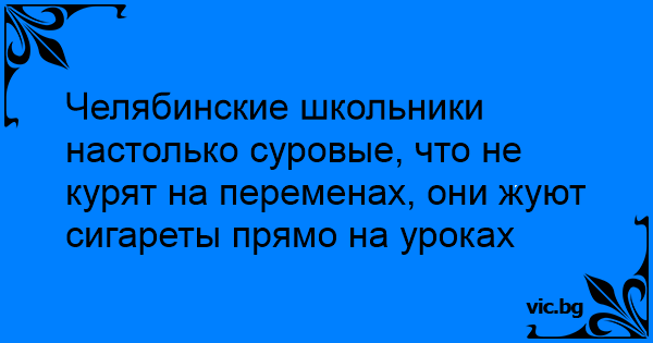 Челябинские школьники настолько суровые, что не курят на переменах, они жуют сигареты прямо на уроках