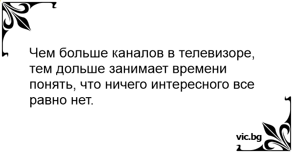 Чем больше каналов в телевизоре, тем дольше занимает времени понять, что ничего интересного все равно нет.
