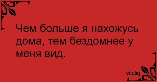 Чем больше я нахожусь дома, тем бездомнее у меня вид.