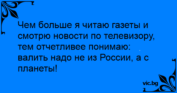 Чем больше я читаю газеты и смотрю новости по телевизору, тем отчетливее понимаю: валить надо не из России, а с планеты!