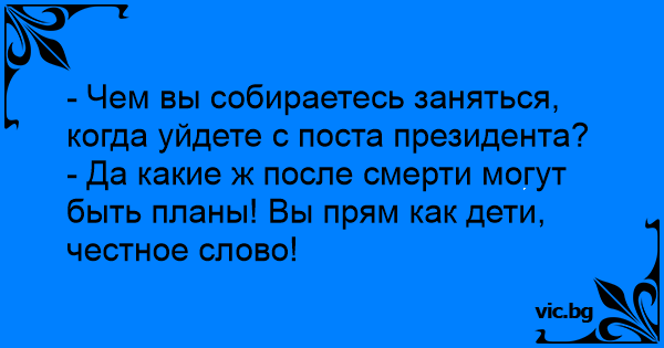 - Чем вы собираетесь заняться, когда уйдете с поста президента?
