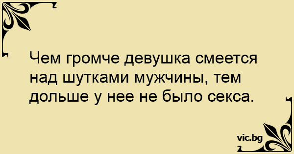 Чем громче девушка смеется над шутками мужчины, тем дольше у нее не было cekca.<br />