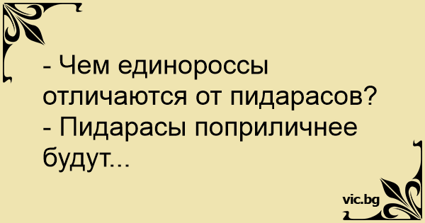 - Чем единороссы отличаются от пидарасов?<br />- Пидарасы поприличнее будут...
