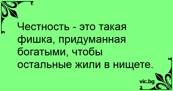 Честность - это такая фишка, придуманная богатыми, чтобы остальные жили в нищете.