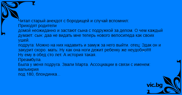 родители вернутся?". И тут я этот самый анекдот и выдал. Говорю, так мол
