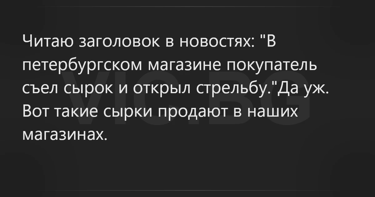 Читаю заголовок в новостях: "В петербургском магазине покупатель съел сырок и открыл стрельбу."Да уж. Вот такие сырки продают в наших магазинах.