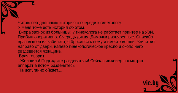 Читаю сегодняшнюю историю о очереди к гинекологу.