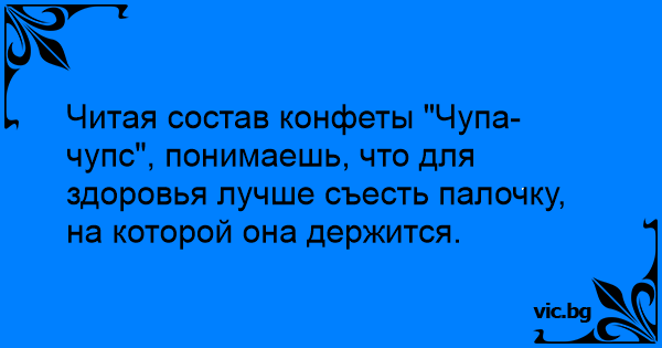 Читая состав конфеты "Чупа-чупс", понимаешь, что для здоровья лучше съесть палочку, на которой она держится.