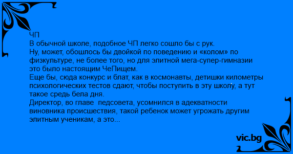 Ну, может, обошлось бы двойкой по поведению и «колом» по физкультуре, не более того, но для элитной мега-супер-гимназии это было настоящим ЧеПищем.