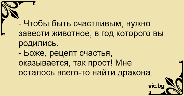 - Боже, рецепт счастья, оказывается, так прост! Мне осталось всего-то найти дракона.