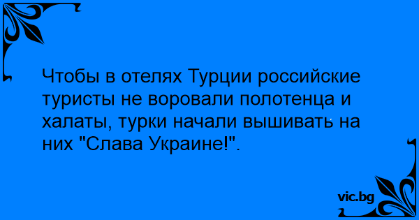 Чтобы в отелях Турции российские туристы не воровали полотенца и халаты, турки начали вышивать на них "Слава Украине!".