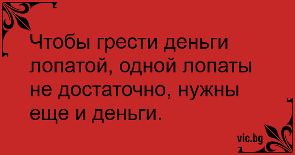 Чтобы грести деньги лопатой, одной лопаты не достаточно, нужны еще и деньги.