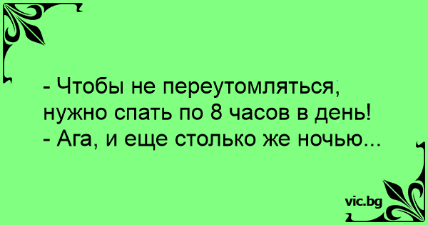 - Чтобы не переутомляться, нужно спать по 8 часов в день!