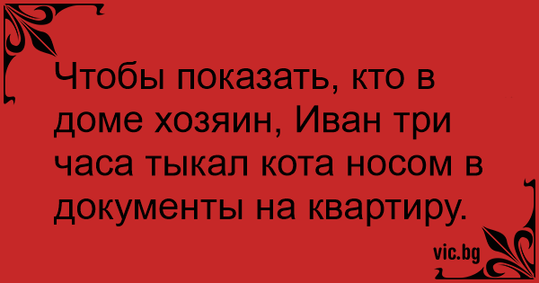 Чтобы показать, кто в доме хозяин, Иван три часа тыкал кота носом в документы на квартиру.